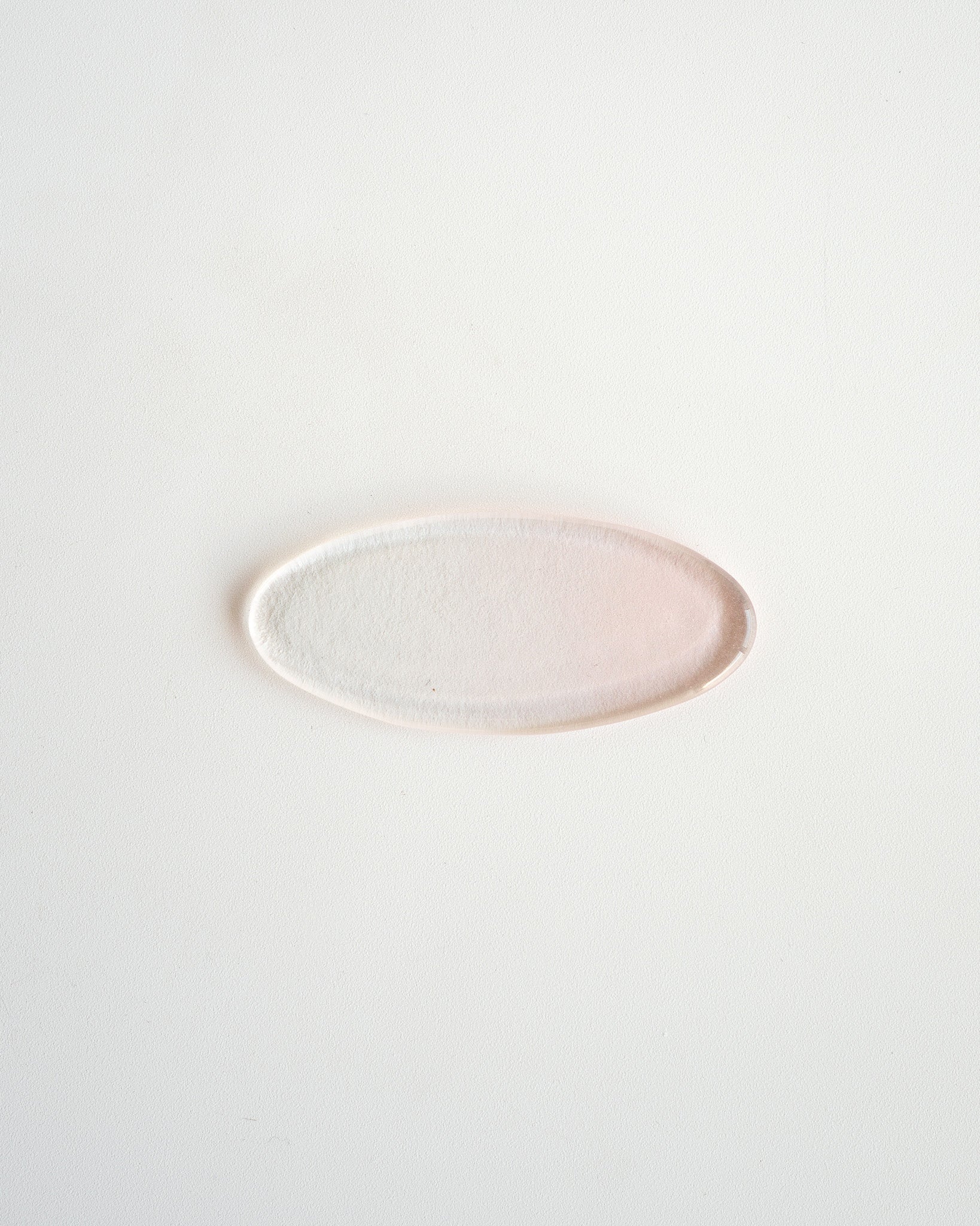 淡いピンクのグラデーションが表面に広がる楕円フォルムは、光を受けるたびにやさしい表情を見せてくれます。