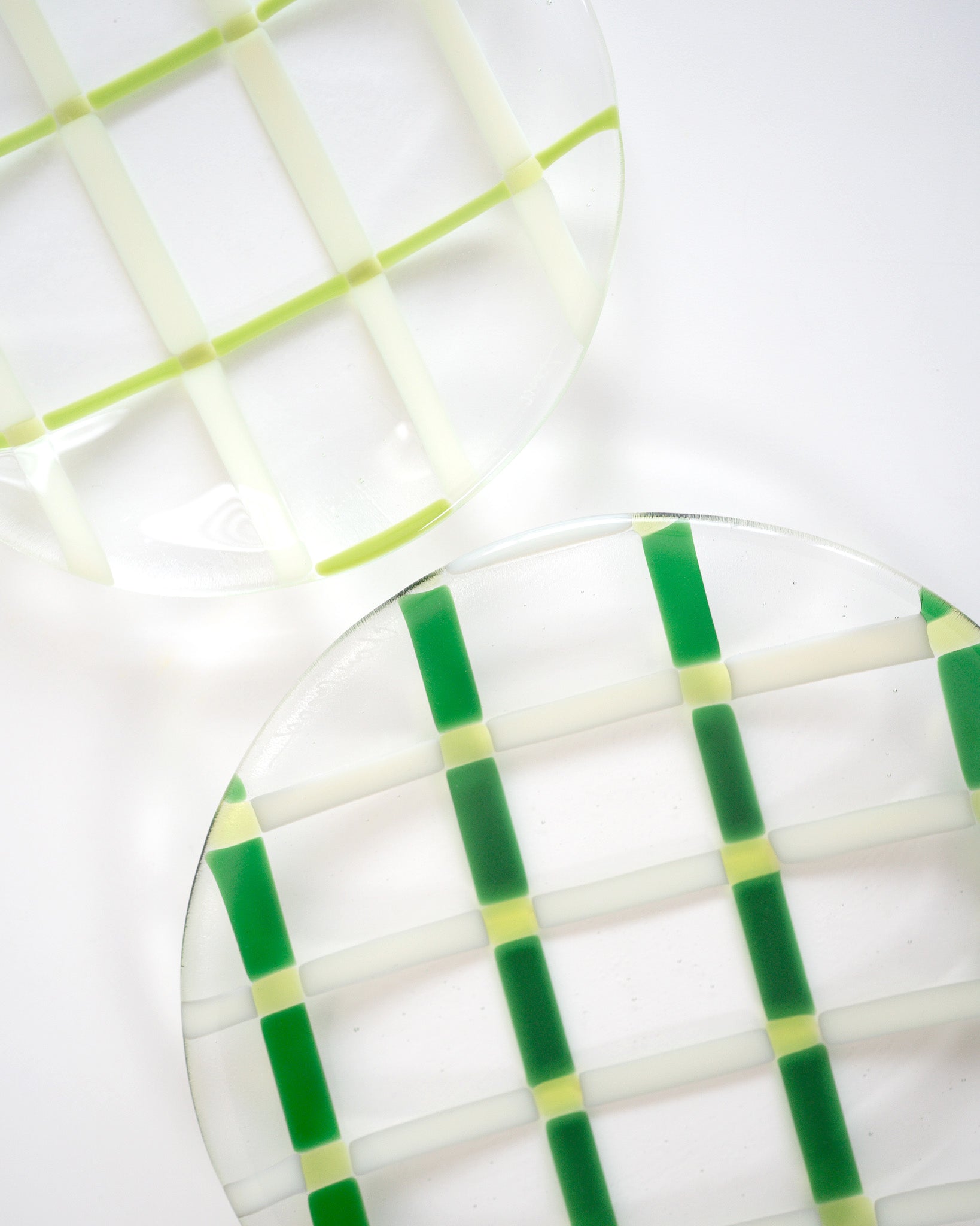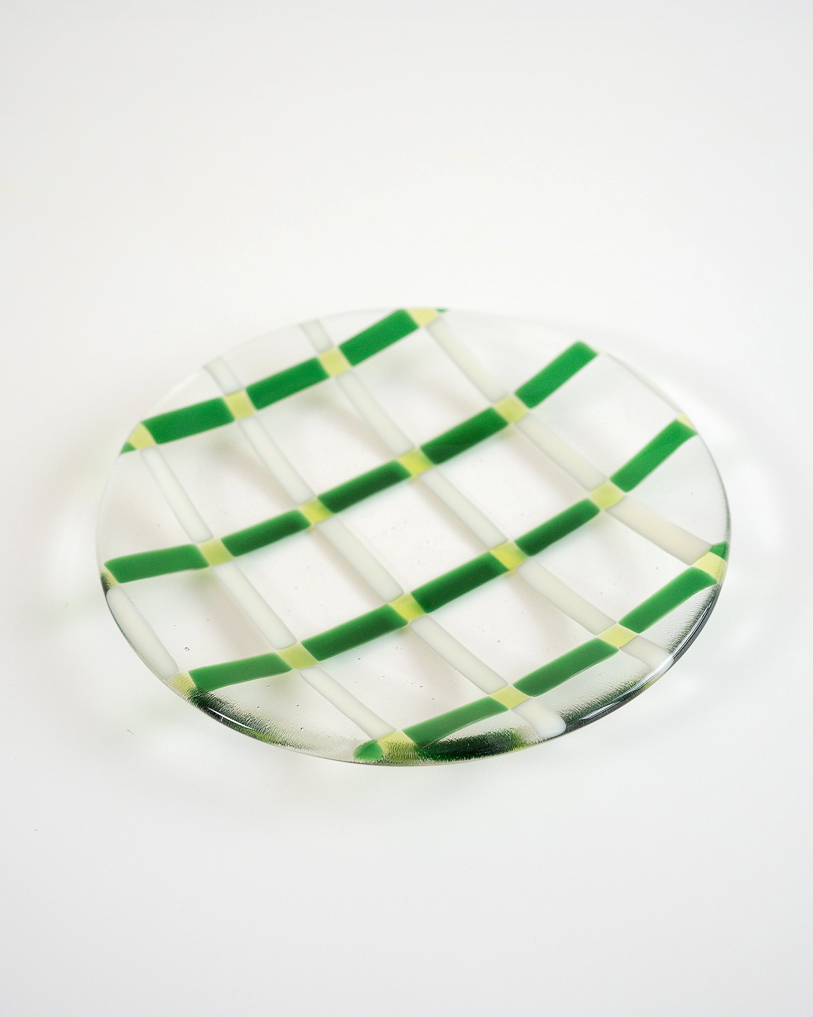 ガラスの透明感の中に、やわらかなグリーンのライン。