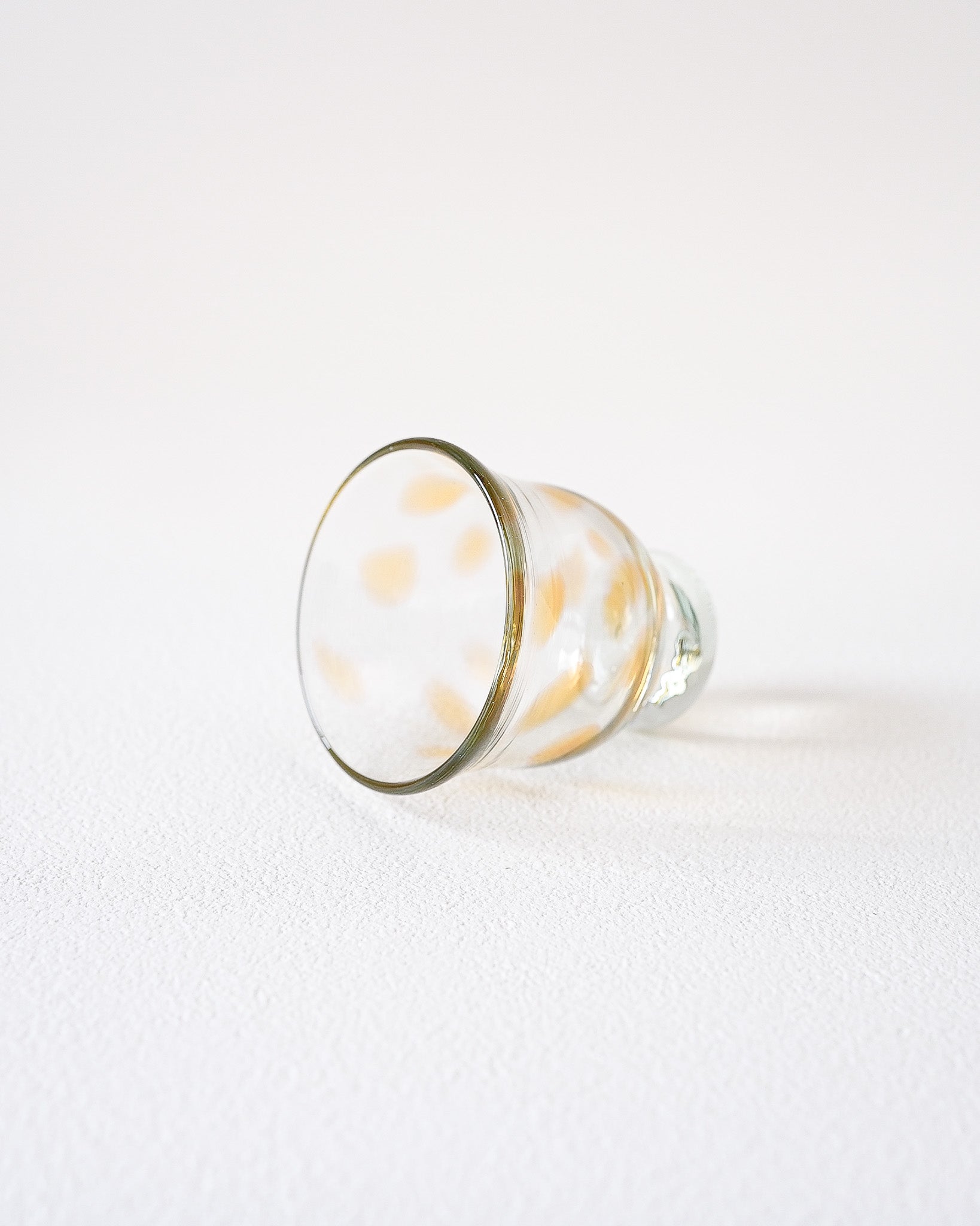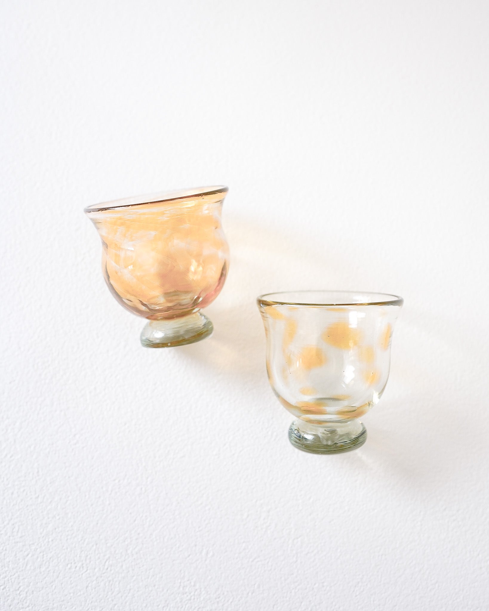 再生ガラスならではのやわらかな透明感と、自然に生まれる気泡や揺らぎが、ひとつひとつ異なる表情をつくります。