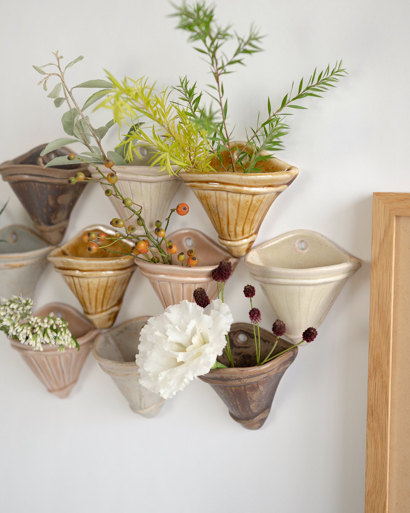 Slorence独自の釉薬の質感と、手仕事による繊細なラインが印象的なフォルムは、壁面に立体的な陰影をつくり、空間に奥行きと表情を添えてくれます。
