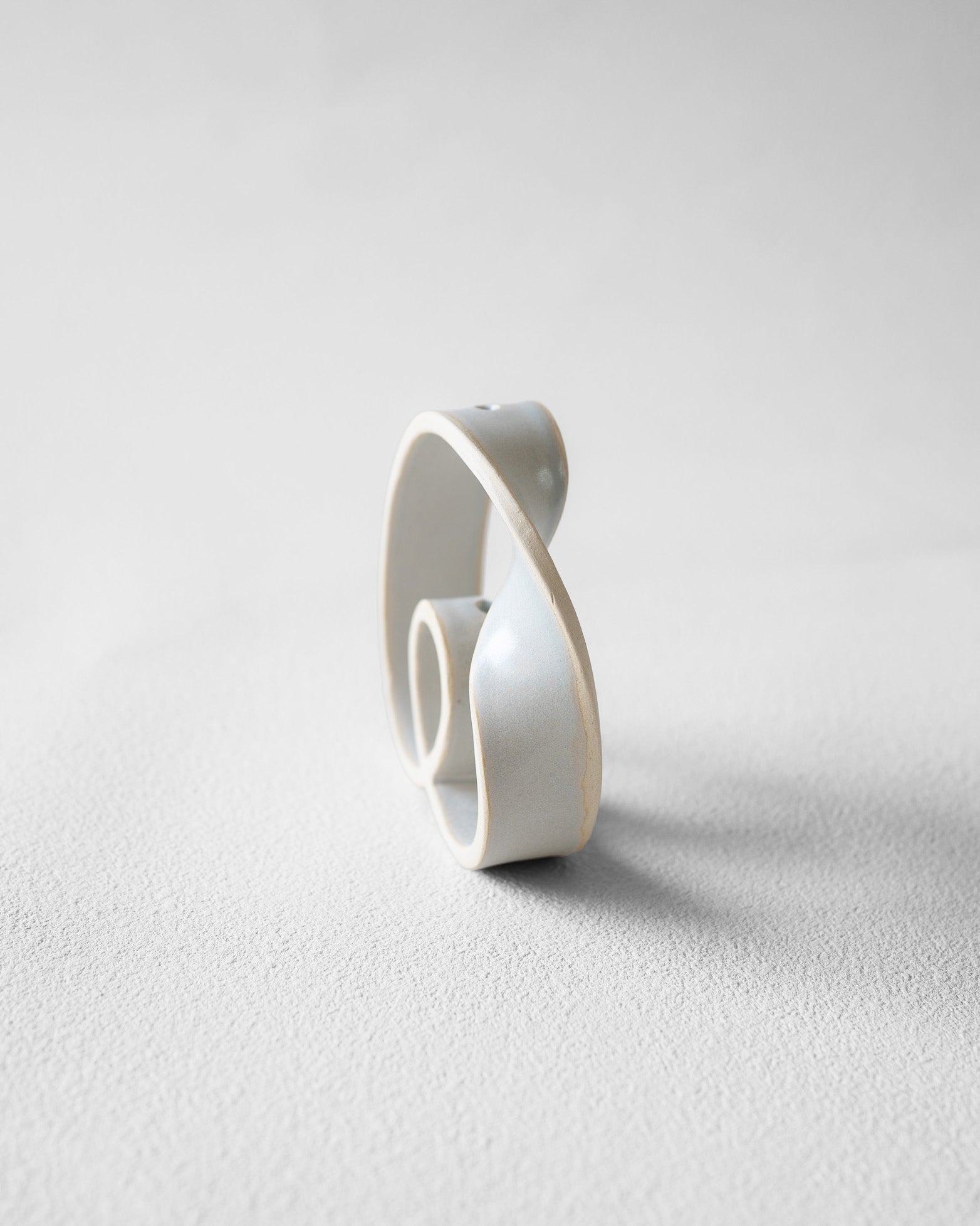陶器でありながら、リボンのような柔らかさを感じさせる曲線と質感が魅力的な1点です。